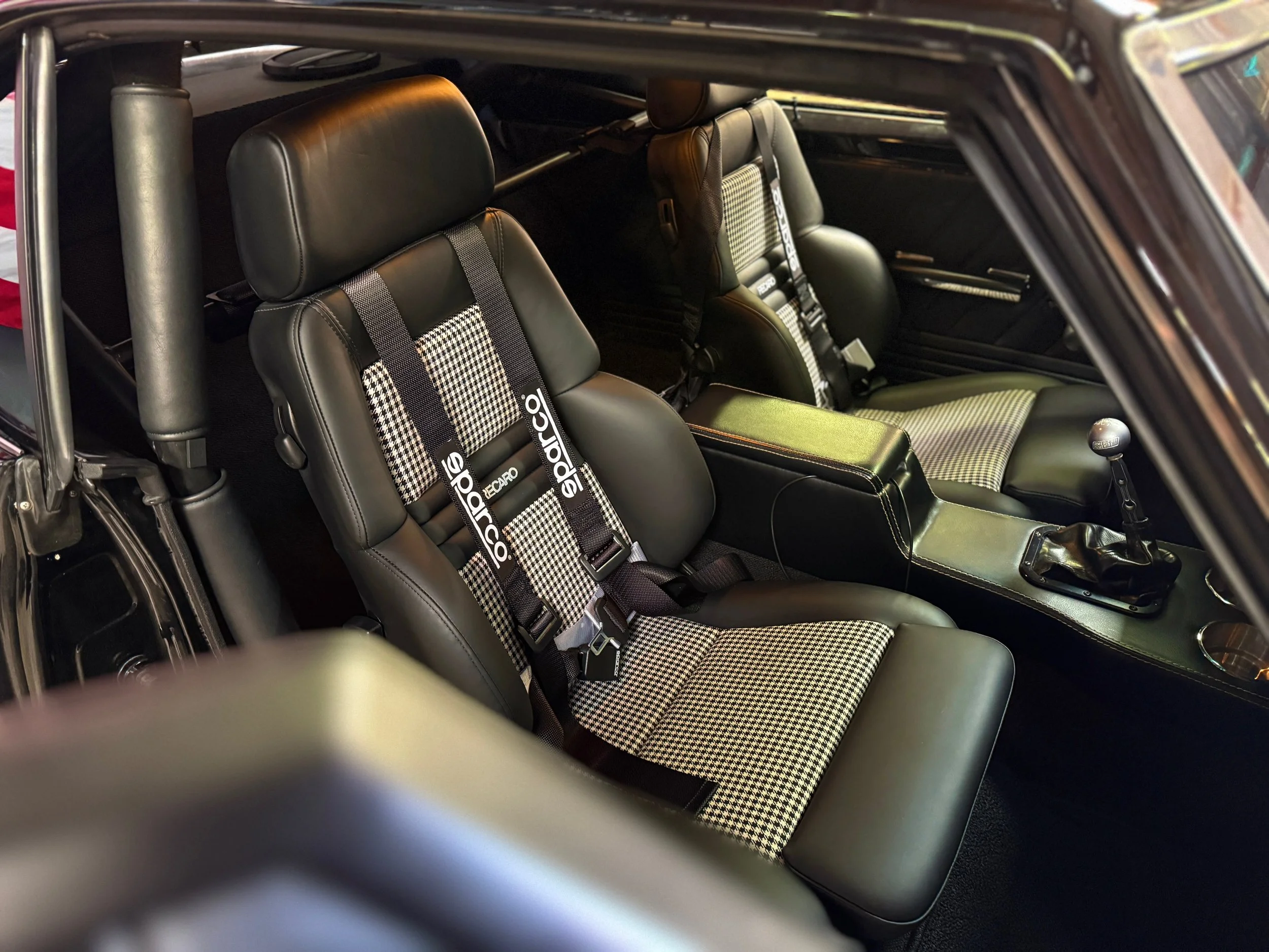 This isn’t your Grandpa’s ‘67 Camaro, but that doesn’t mean he can’t win it! A Whipple Supercharged Wegner LSX controlled by Holley Terminor X max puts 730 horsepower through a Tremec Magnum 6-Speed with Centerforce clutch, carbon fiber driveshaft, and Fab9 rear end. Chassis Works front subframe, subframe connectors, and rear 4 link allow this Camaro to perform just as flawlessly in the twisties as you’d expect on the drag strip. Boze forged Synchro wheels and Toyo Proxes R888R tires keep it connected to the road, while Willwood disc brakes and Hydroboost brake assist ensure it stays on the pavement. Houndstooth Recaro seats and Sparco seatbelts provide support and keep you firmly planted while you glance at the Holley LCD cluster, grip the MOMO Prototipo Black Edition steering wheel, and tackle corners with confidence in the comfort of Vintage Air.